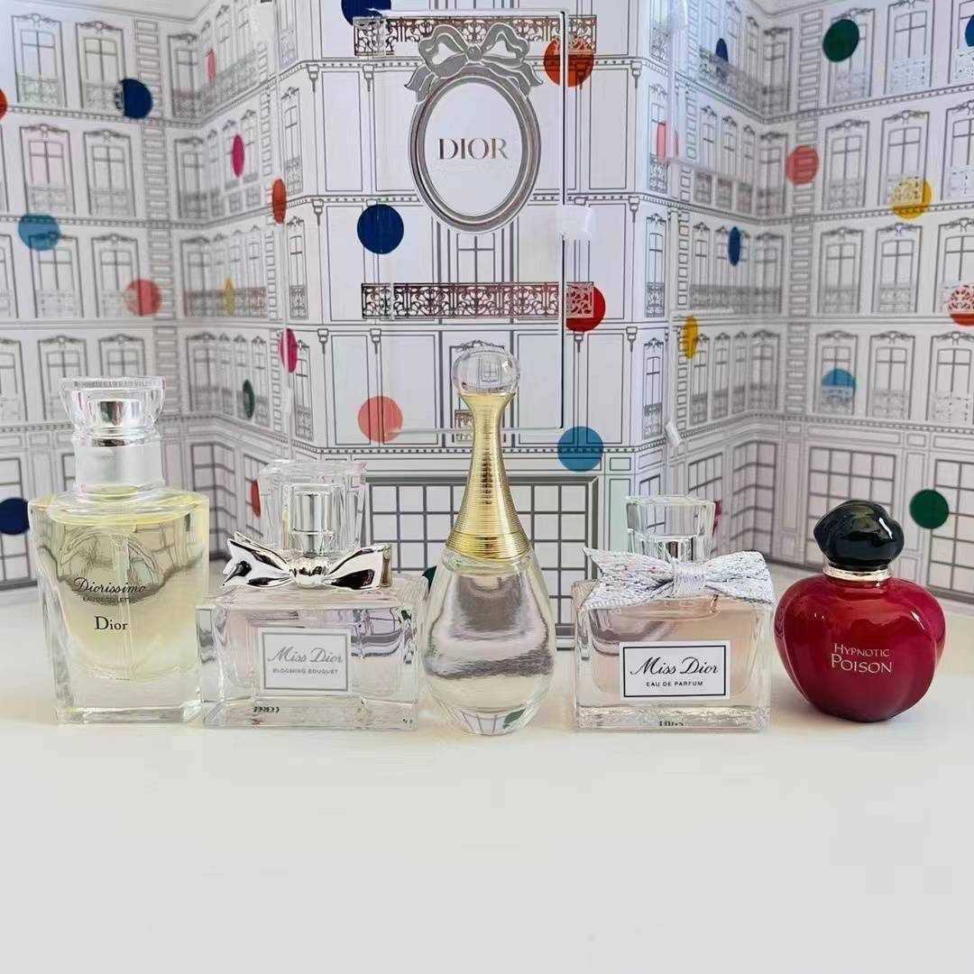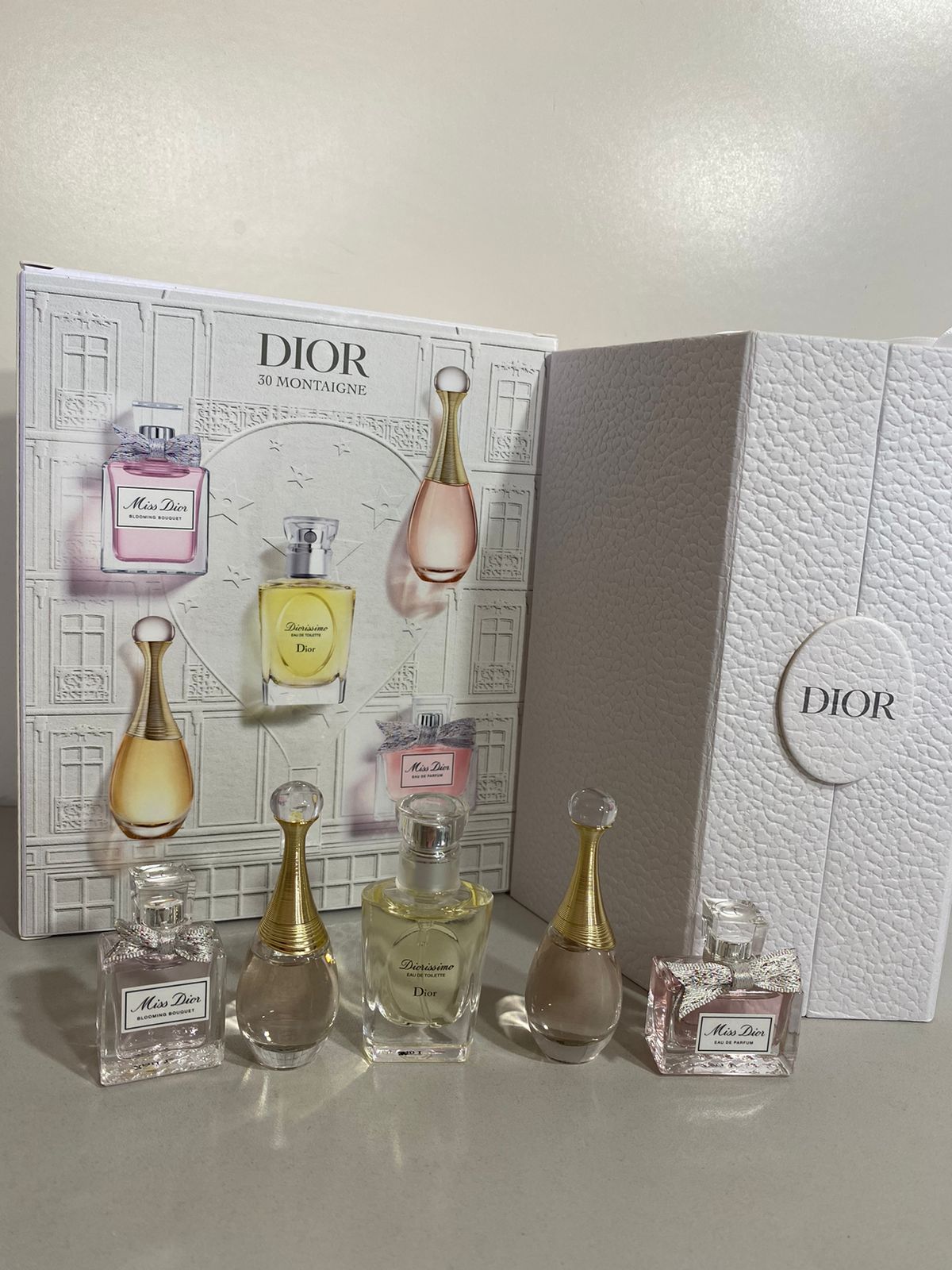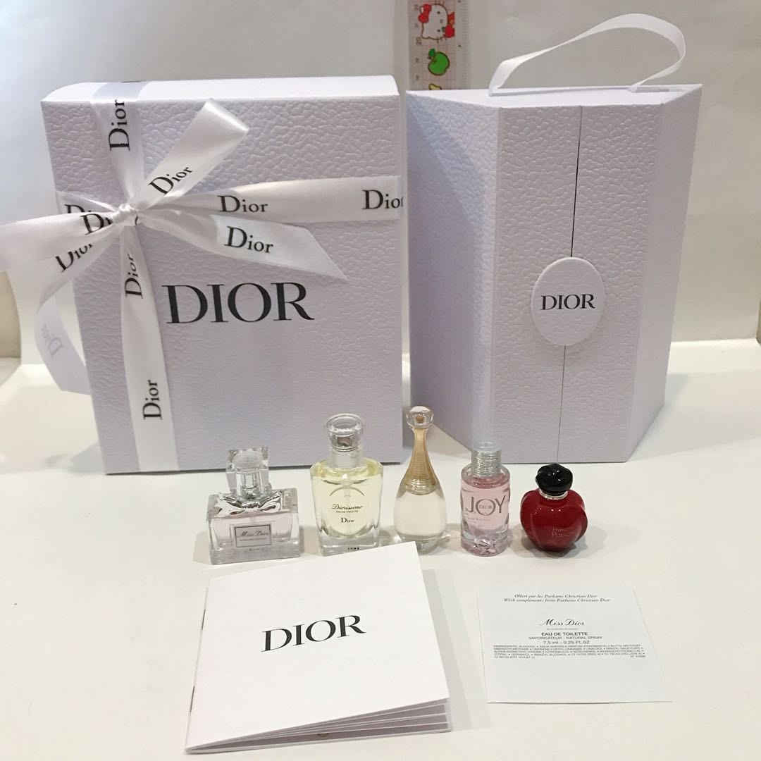 En colaboraciรณn con Dior, en Aura Perfumeria hemos creado un kit con los 5 perfumes mรกs vendidos de Dior en tamaรฑos pequeรฑos, que contienen 50 ml cada uno. y ademรกs viene con una hermosa caja creada especialmente para este kit.